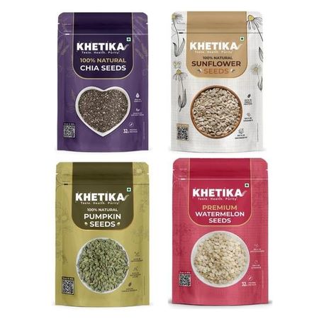 Главная » Продукты,напитки,табак Khetika Edible Seeds Combo 800gm, Chia Seeds + Sunflower Seeds + Pumpkin Seeds + Watermelon Seeds, Superfood Mix for Healthy Eating (200g, each) Просмотров 5 Vedic Spices