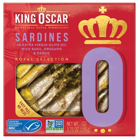 0%Белки 13 г 23%Витамин D6 мкг 30%Кальций245 мг 20%Железо2 мг 10%Калий267 мг 6%*% Дневной нормы (DV) показывает, сколько питательных веществ в порции пищи вносит в ежедневный рацион. Рекомендация употреблять 2000 калорий в день имеет общий характер. По особому королевскому разрешениюКоролевский отборДобыча морепродуктов экологичным способом сертифицирована Морским попечительским советом (MSC)Сертификат Non GMO Project VerifiedКошерный продуктВысокое содержание белкаСодержит 2025 мг омега-3 жирных кислот в 1 порцииКоличество рыбы: 8-22 рыбыBPI NIБез глютенаИзготовлено из рыбы дикого уловаДуб древесный копченыйПродукт упакован вручнуюНорвежские традиции с 1902 годаКороль Оскар любил все в Норвегии, особенно наши морепродукты. Вот почему в 1902 году Он подарил нам величайший дар — свое имя.Эти сардины премиального качества вылавливают из отборной океанской воды, затем коптят на дубовой древесине, упаковывают вручную и консервируют в лучшем испанском оливковом масле. Этот продукт Royal Selection сертифицирован MSC и проверен на отсутствие ГМО.Сведения об общем содержании жиров см. в таблице пищевой ценности.