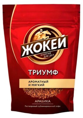 Главная » Продукты,напитки,табак Кофе растворимый ЖОКЕЙ Триумф сублимированный, 150 г Просмотров 3 Растворимый сублимированный кофе из отборной арабики. Отличается мягким, хорошо сбалансированным вкусом и ярким ароматом. ЖОКЕЙ