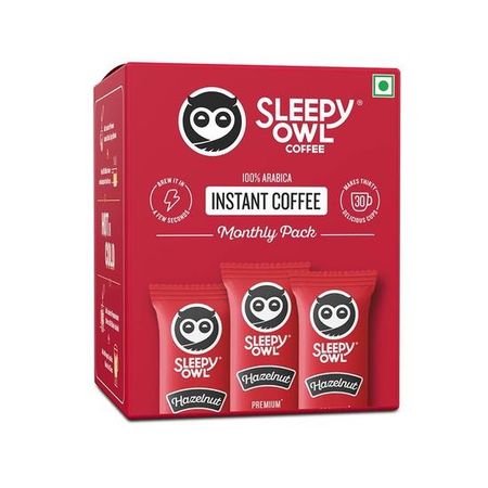 Кофе Sleepy Owl со вкусом лесного ореха 100% арабика в пакетиках | 60 г — Упаковка 30 пакетиков по 2 г растворимого кофейного порошка | Ореховый и насыщенный | Удобный для путешествий