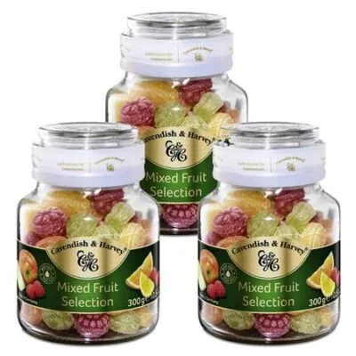 Конфеты Cavendish Harvey Mixed Fruit Candy Jar 300g Набор из 3 банок с лимоном, апельсином, малиной, яблоком, ассорти из 4 вкусов. Немецкие конфеты. Вкусные конфеты от