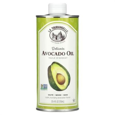 Ремесленный продуктСертификат Non-GMO Project VerifiedЛегкий маслянистый вкус авокадоКошерный продуктВ каждой порции содержится в среднем 8 г омега-9Отжато шнековым прессомНе содержит натрияПодходит для вегановНе содержит бисфенола AОтсутствие глютена в составе подтверждено сертификатом Certified Gluten FreeМасло для приготовления пищиПри производстве масел La Tourangelle мы используем теоретические и практические знания, которые передаются в нашей семье из поколения в поколение. Эти восхитительные ремесленные масла производятся в Калифорнии мастерами высокого класса с применением традиционных французских методов.Наше масло авокадо изумрудно-зеленого цвета отжато шнековым прессом из мякоти авокадо премиального качества и имеет приятный фруктовый и нежный маслянистый вкус. Это чудо-ингредиент для приготовления сладких и соленых блюд. Кроме того, его можно использовать для ухода за кожей и волосами.Степень нагреваУмеренно высокая: пассеровка, взбивание, выпечка.Вкусовые ощущенияМягкий и нежный вкус.