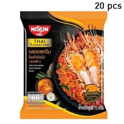Лапша быстрого приготовления Nissin, тайская фирменная паста с креветками Том Ям, вкус сливочного соуса (Сухой тип) 71 г. х 5/10/15/20 шт. 71 g. x 20 pcs