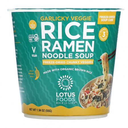 Описание Без ГМООтсутствие глютена подтверждено сертификатом Gluten FreeВеганский продуктМягкийСублимированные овощиГотово за 3 минутыИзготовлено из органического коричневого рисаРис — это жизнь®100% цельнозерновых ингредиентов, не менее 50 г в 1 порцииСертификат B CorporationСертификат Certified Organic от WFCF OrganicНовое видение чашки азиатской лапши! Органическая лапша из коричневого риса без глютена и оживленные сублимированные овощи сочетаются с пикантным чесноком. Идеально подходит для обеда, быстрого перекуса или перекуса. Рекомендации по применению Кипяток. Снимите крышку наполовину, вылейте суп из пакетика в чашку и залейте кипятком до отметки внутри чашки. Закройте крышку и подождите 3 минуты. Тщательно перемешайте. Приятного аппетита!Микроволновая печь (1200 Ватт): Полностью снимите крышку и добавьте пакетик супа. Налейте воду комнатной температуры до линии наполнения. Поставьте в микроволновую печь на 2 минуты. Перемешайте и поставьте в микроволновую печь еще 30 секунд. при необходимости, пока лапша не станет мягкой. Тщательно перемешайте. Приятного аппетита! Время приготовления в микроволновой печи может варьироваться в зависимости от мощности духового шкафа. Ингредиенты Мука из органического бурого риса, шпинат, грибы, морковь, соль, дольки чеснока, дрожжевой экстракт, сахар, гуаровая камедь, чесночный порошок, перец в порошке, витамин Е в качестве антиоксиданта. Предупреждения Предупреждение. Продукт очень горячий после нагревания. Обращайтесь с ним осторожно, чтобы не пролить продукт и не получить ожоги. Никогда не ставьте в микроволновую печь без воды.