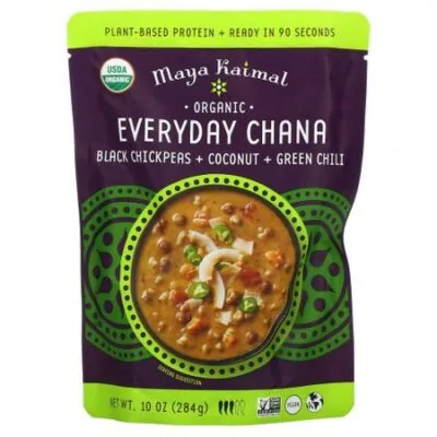 Витамин D0 мкг0%0 мкг0%Кальций50 мг4%90 мг6%Железо1,2 мг6%2,4 мг15 %Калий270 мг6%550 мг10%* Процент от суточной нормы указывает, сколько питательных веществ необходимо в одной порции для ежедневного рациона. Рекомендация употреблять 2000 калорий в день имеет общий характер. Растительный протеин + готов за 90 секундСертификат USDA OrganicСертификат Non GMO Project VerifiedВеганский продуктКошерный продуктОрганический состав сертифицирован Oregon TilthНе содержит бисфенола AЧерный нут, кокос и зеленый перец чилиВдохновением для создания этого блюда послужила кадала, фирменное блюдо штата Керала, приготовленное из черного нута, приготовленного в кокосовом соусе с черным перцем и зеленым чили. Этот сорт, известный как кала чана, имеет насыщенный, глубокий вкус.Что такое повседневная хана?«Хана» — это индийское слово для обозначения нута, богатых белком бобов, которые бывают коричневого и черного цветов. Мы предлагаем вам наши любимые чана-карри, сваренные на медленном огне и приправленные тщательно подобранными смесями специй. Мы могли бы есть эту индийскую еду каждый день с лепешками, с рисом или самостоятельно.Maya KaimalАвтор поваренной книги, отмеченной наградами