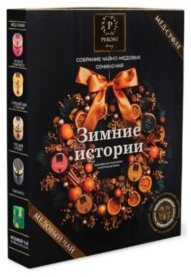 Набор дополнен нашим самым изысканным Медовым чаем! Черный чай с сушеным апельсином, шишками, ягодами черноплодной рябины, клюквы и листьями брусники подарит ощущение новогодней сказки и аромата хвои у вас дома.