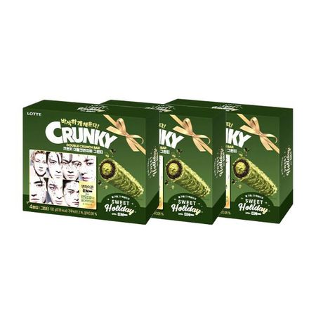 Набор снеков Lotte Wellfood в коллаборации с ENHYPEN / 1 случайная печать (Батончик Crunch, Желе с ягодами Zero, Mon Cher Кокос и Молочный кофе) (10 вариантов) # Double Crunch Bar Green Tea 132g x 3pcs