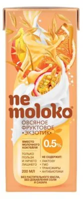 Nemoloko питьевой продукт, богатый пищевыми волокнами, витаминами, микро- и макроэлементами. Nemoloko овсяное фруктовое Экзотик это то, что нужно для отличного настроения, оно освежает и радует вкусом.