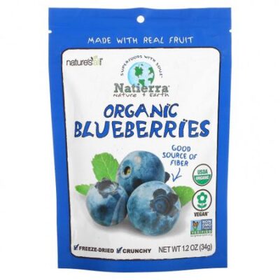 Дополнительные факты Размер порции: 1 пакет (43 г) Количество на порцию %Дневная стоимость* Калории 140 Всего жиров 1 г 1% Насыщенный жир 0 г 0% Транс Фат 0 г холестерин 0 мг 0% натрий 0 мг 0% Всего углеводов 31 г 11% Диетическое волокно 6 г 21% Всего сахара 23 г Включает в себя 0 г добавленных сахаров 0% белка 1 г Витамин Д 0 мкг 0% кальций 19 мг 2% Железо 1 мг 6% калий 0 мг 0% Витамин C 0 мг 0% * Ежедневное значение% говорит вам, сколько питательных веществ в порции пищи способствует ежедневному рациону 2000 калорий в день используется для общего питания. Содержит настоящие фруктыSuperfoods With Soul ™Nature + Earth — природа и земляХороший источник клетчаткиСертификат Non-GMO Project VerifiedСертификат USDA OrganicВеганский продуктС кусочками арахисаОрганический продукт, сертифицированный мировой культуройБез красителейБез добавленного сахара*Кошерный продуктЭта полезная закуска начинается со свежей голубики, полученной из сезонных культур. Цельные ягоды голубики сублимируют, благодаря чему из них удаляется большая часть воды и получается хрустящий вкус, который делает их абсолютно неотразимыми.Этот снек, который можно взять с собой, сочетает в себе витамины и клетчатку свежих фруктов с хрустом чипсов и сладостью конфет. Никакой жарки, выпечки, только сахар, который дала нам сама природа!*Не низкокалорийная еда, информацию о калорийности и содержании сахара см. в информации о питании.