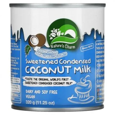 С 2014 г.Сделано в ТаиландеИз кокосов лучшего качества«Попробуйте оригинальное, первое в мире сгущенное с сахаром кокосовое молоко»Без молочных продуктов и соиВеганский продуктПодкладка без бисфенола АНатуральная альтернатива без молочных продуктов для тех, кто любит вкус сгущенного молока с сахаром. Nature’s Charm можно использовать в любом рецепте приготовления сгущенного молока с сахаром.Насыщенный кокосовый вкусБез лактозыНе содержит глютенаХороший источник кальция