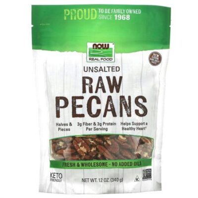 Витамин0 мкг0%Железо0,8 мг4%Кальций21 мг2%Калий123 мг2%* Процент от суточной нормы указывает, какая доля от ежедневной нормы потребления питательного вещества содержится в одной порции. Рекомендация употреблять 2000 калорий в день имеет общий характер. Половинки и кусочки3 г клетчатки и 3 г белка в 1 порцииПомогает в поддержании здоровья сердцаСвежий и полезный продукт — без добавленных маселПодходит для людей, соблюдающих кетодиетуКошерный продуктСертификат Non GMO Project VerifiedЕшьте то, что вы любите. Любите то, что вы едите.Веганский продуктОрех пекан — фаворит серди любителей орехов во всем мире, и не зря. Кроме того, что он очень вкусный, он богат питательными веществами, что делает его идеальным перекусом для детей и взрослых.Пекан от NOW Real Food® является хорошим источником клетчатки и содержит незаменимые жирные кислоты природного происхождения. Орех пекан настолько вкусный, что входит в число немногих орехов, из которых делают пирог по специальному рецепту. И это хорошая еда!Научные данные позволяют предположить, но еще не утверждать точно, что ежедневное потребление в пищу 43 г (1,5 унции) большинства видов орехов, таких как орех пекан, в составе диеты с пониженным содержанием насыщенных жиров и холестерина позволит снизить риск сердечных заболеваний.Свежие продукты всегда вкуснее, поэтому данный продукт был упакован с использованием технологии NOW Fresh Fill, позволяющей максимально сохранить вкус и свежесть.Более 50 лет NOW Real Food® предоставляет продукты высочайшего качества и использует только лучшие ингредиенты. Мы — независимое семейное предприятие, и гордимся этим. NOW сохраняет натуральное.