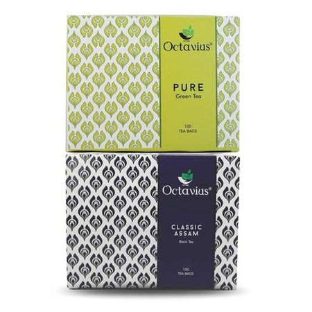 Главная » Продукты,напитки,табак Octavius | Классический черный чай Assam и чистый зеленый чай, комбинированная упаковка — 100 пакетиков в каждой | Крепкий чай | Полностью натуральный | Богат антиоксидантами | ( 2 г x 100 пакетиков) x2 Просмотров 3 Vedic India