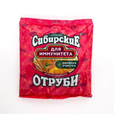 Пшеничные отруби богаты витаминами группы В, минеральными веществами, особенно калием и клетчаткой. Поэтому они используются в диетах, при запорах, ожирении, атеросклерозе, гипертонической болезни, желчно-каменной болезни, аллергии.Отруби Сибирские “для Иммунитета”. Рекомендуются как профилактическое и оздоровительное средство, необходимое для полноценной работы кишечника, снижения холестерина в крови, очистки пищеварительного тракта от шлаков и токсинов.Отруби – это одна из форм сложных углеводов, обладающих низким гликемическим индексом. Также отруби способны понижать гликемический индекс других продуктов. Это натуральный продукт, который состоит из оболочек зерна и не отсортированной муки.Без ароматизаторов, красителей, улучшителей вкуса!Отруби — это очень полезный и низкокалорийный продукт, в них высокое содержание пищевых волокон.Пшеничные отруби – это источник клетчатки, а также витаминов А, Е, группы В и ценных микро- и макроэлементов.Помимо витаминов и клетчатки в отрубях содержатся и такие ценные элементы как сера, марганец, фосфор, медь, цинк и йод, необходимые организму.Для тех, кому вечером хочется воздержаться от плотного ужина — незаменимый выход из положения. Стакан кефира или йогурта с отрубями прекрасно насытит и поможет справиться с чувством голода.Регулярное употребление Сибирских отрубей “для Иммунитета”:улучшает работу кишечника;нормализует вес и обмен веществ;обогащает рацион растительными волокнами;предотвращает болезни, связанные с неправильным питанием;очищает пищеварительный тракт;дарит организму лёгкость и хорошее настроение.Состав: отруби пшеничные пищевые, отруби ржаные, имбирь корень, куркума.Срок годности: 12 месяцев.