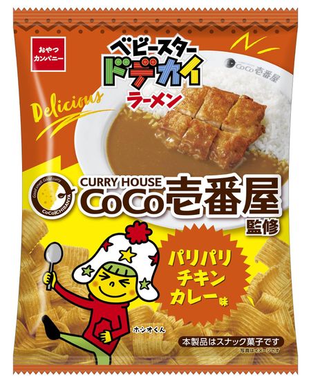 Oyatsu Company Baby Star Dodekai CoCo Ichibanya Хрустящий куриный карри вкус Широкий Легко есть 60 г x 12 пакетиков (Продукт коллаборации, Лапша, Снек)