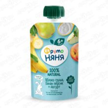 Пюре ФрутоНяня яблоко-груша-банан-персик-йогурт 90г с 6мес
