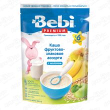 Каша Bebi PREMIUM молочная фруктово-злаковое ассорти с натуральныси злаками и фруктами 200г с 6мес БЗМЖ