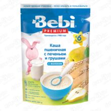 Каша Bebi PREMIUM молочная пшеничная с печеньем и грушей 200г с 6мес БЗМЖ
