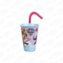 Стакан пластиковый с трубочкой Щенячий патруль 430мл розовый