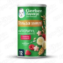 Снеки-звездочки Gerber рисово-пшеничные банан-малина 35г с 12мес