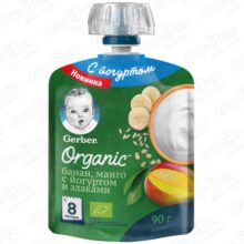Пюре Gerber Organic банан-манго-йогурт-злаки 90г с 8мес БЗМЖ