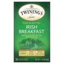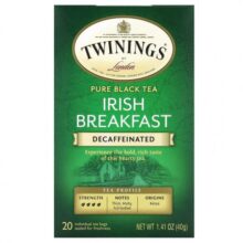 Twinings, Чистый черный чай, ирландский завтрак, без кофеина, 20 чайных пакетиков, 40 г (1,41 унции)