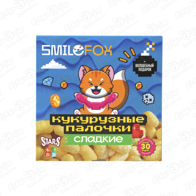 Главная » Продукты,напитки,табак Палочки кукурузные STARS KIDS SMILEFOX с игрушкой 55г Просмотров 9 ООО ГЛОСС
