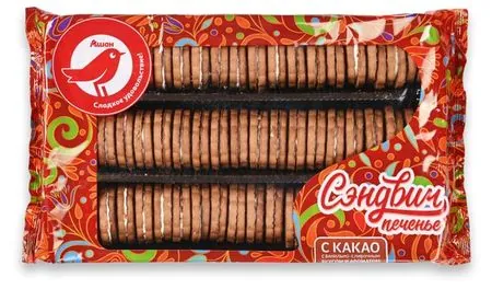 Печенье-сэндвич АШАН Красная птица — сладкое изделие с кремовой начинкой и потрясающим ароматом какао и ванили. Идеальное дополнение к уютному чаепитию. Два сахарных печенья традиционное угощение, которое порадует вас и ваших гостей. Наслаждайтесь вкусом кондитерских изделий вместе с Красной птицей!