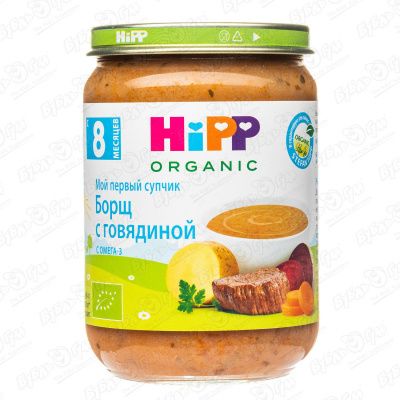 Пюре Hipp Organic борщ с говядиной 190г с 8мес