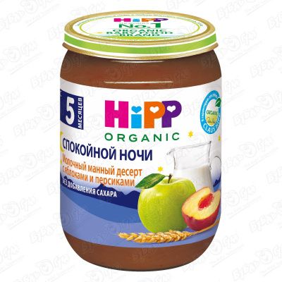 Главная » Продукты,напитки,табак Пюре HiPP Organic Спокойной ночи молочно-манный десерт яблоко-персик 190г с 5мес БЗМЖ Просмотров 11 Hipp