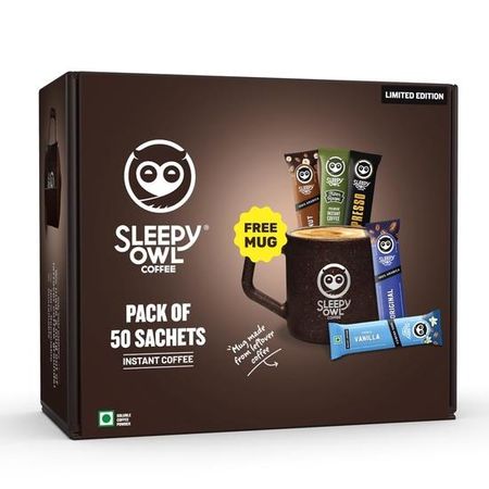 Главная » Продукты,напитки,табак Подарочный набор растворимого кофе Sleepy Owl | 50 кофейных пакетиков + бесплатная кружка | Ассорти вкусов: Оригинальный, Французская ваниль, Фундук, Экспрессо и Фильтр Каапи Просмотров 1 Vedic Spices