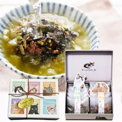 Подарок на день для вашей коробочки Ochazuke Kitty с кислыми сливами кисю нанко умэбоси и ароматной основой для оядзукэ с кодзи. Подарочные товары для кота оядзукэ со сливами кисю нанко. Коробка для отца 8