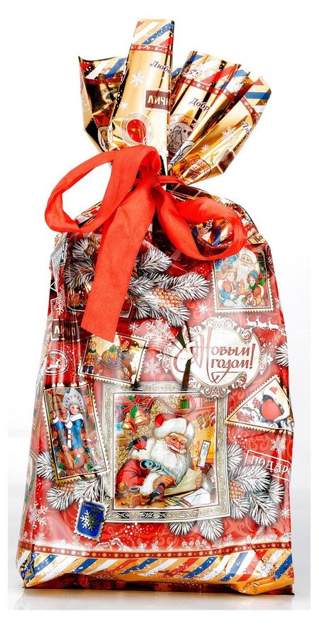 Сладкий набор, МосУпак, Подарок Почта Деда Мороза — 1475 гр., содержит кондитерские изделия кондитерских фабрик Невский кондитер, Объединенные кондитеры, КДВ, БКК Коломенский, Коломенское поле. Сюжет полный тайны и ожидания. Сейчас станет известным то, что доставила почта. Богатая, насыщенная палитра вызывает восхитительные эмоции. Такой подарок хочется держать в руках. Кондитерские изделия упакованы в отдельный пластиковый пакет, который находится внутри подарочного мешочка, подобранного атласной лентой. Мешочек выполнен из экологически чистых материалов.