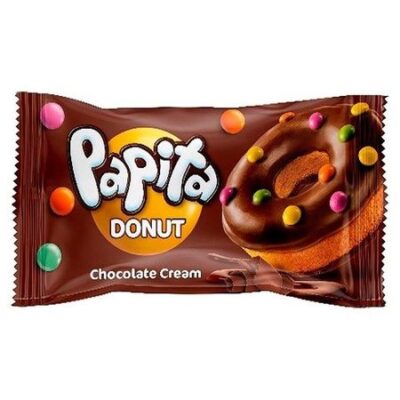 Кекс «PAPITA DONUT» с какао глазурью, шоколадной начинкой и цветным драже. PAPITA DONUT — это воплощение идеального сочетания хрустящей оболочки и нежной начинки. Выбирайте между банановой, клубничной или шоколадной начинкой и наслаждайтесь великолепными вкусами в каждом маленьком шарике.