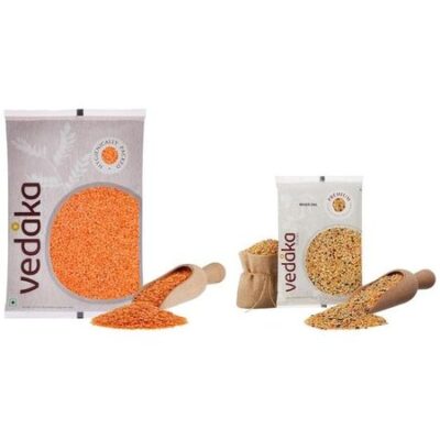 Популярный красный сплит Масур Дал Vedaka, 2 кг | Богат белком | Без холестерина | Без добавок и бренда Amazon — смешанный дал Vedaka, 1 кг | Источник белка