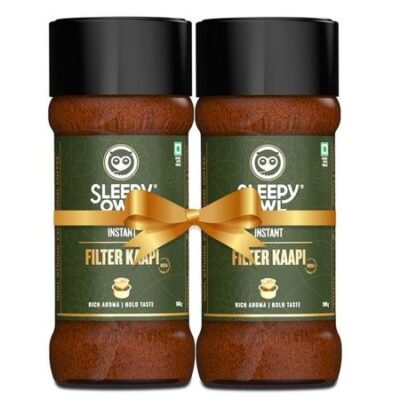 Главная » Продукты,напитки,табак Премиальный растворимый кофе Sleepy Owl Filter Kaapi | 100 грамм x 2 | Аутентичный бленд робусты и цикория | Готовит 100 чашек | Порошок | Банка Просмотров 1 Vedic Spices