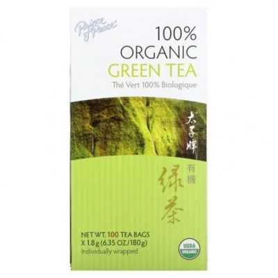 Пищевая ценностьРазмер порции: 1 чайный пакетикПорций в упаковке: 100 Количество в 1 порции:% от суточной нормы*Калории0 Всего жиров0 г0%Натрий0 мг0%Всего углеводов0 г0%Белки0 г Не является существенным источником насыщенных жиров, трансжиров, холестерина, пищевой клетчатки, сахара, добавленного сахара, витамина D, кальция, железа и калия. * Процент от суточной нормы указывает, какая доля от ежедневной нормы потребления питательного вещества содержится в одной порции. Рекомендация употреблять 2000 калорий в день имеет общий характер. Сертификат USDA OrganicИндивидуально упакованные пакетикиОрганический продукт, сертифицированный EcoCert ICOPrince of Peace® — это бренд, которому можно доверять. Наша компания производит чаи высокого качества с 1983 года. Органическое происхождение наших чайных листьев подтверждено сертификатом. Вместо проведения дорогостоящих рекламных кампаний мы решили вложить эти средства в вас, нашего потребителя, и позволить вам рассказать другим о наших замечательных продуктах. Prince of Peace® поддерживает социальные программы по оказанию помощи во всем мире. Основной упор делается на заботу о детях-сиротах с особыми потребностями в детском доме Prince of Peace в Китае, который служит более чем 100 детям-сиротам.Наш 100% органический зеленый чай изготовлен из свежесобранных молодых нежных листьев. Листья проходят обычный для китайских зеленых чаев процесс обжаривания на сковороде для придания более темного цвета и насыщенного вкуса. Зеленый чай известен своими антиоксидантными свойствами, оказывающими положительное воздействие на здоровье. Обычная чашка зеленого чая с жасмином содержит около 20–30 мг кофеина, в то время как в чашка кофе — 100–180 мг.