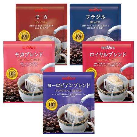 Пробный набор из 5 видов кофе в пакетиках по 10 г Mocha Royal European Всего 75 пакетиков Brooks Coffee Brooks BROOKS [Мокко, Бразильский, Смесь, Смесь, Смесь]
