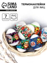 Термонаклейки на 7 яиц «Кролики, цыплята», на пасху