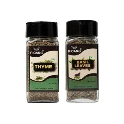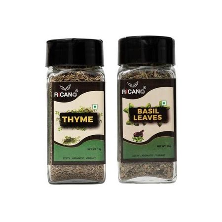 Рикано Тимьян 15г и Листья Базилика 15г Комбо (Упаковка из 2 шт.) | Свежевысушенные | Натуральные травы | Идеально для пиццы, пасты, салатов и супов | Без добавок