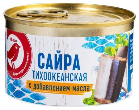 Консервированная рыба является источником легкоусвояемого белка и за счет специфики изготовления сохраняет до 95% витаминов и минералов. Сайра тихоокеанская с добавлением масла АШАН Красная птица — это натуральные рыбные консервы, которые станут отличной самостоятельной закуской, а также ингредиентом для приготовления ароматной ухи, рыбного пирога, вкусного салата, рулета с лавашом и многих других любимых блюд.