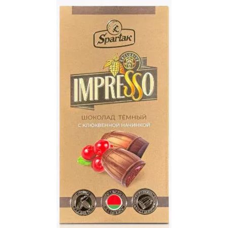 Главная » Продукты,напитки,табак Шоколад Impresso тёмный с клюквенной начинкой 141 г Просмотров 1 Impresso