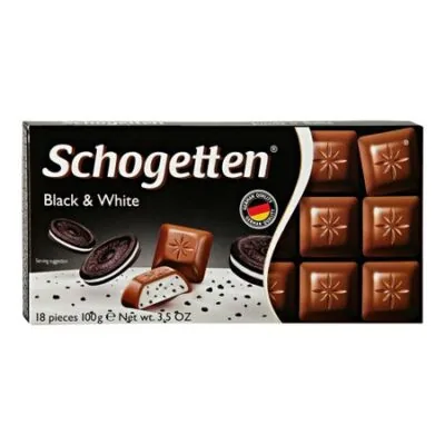 Главная » Продукты,напитки,табак Шоколад Schogetten Black & White Молочный с кусочками печенья 100 г Просмотров 1 Schogetten