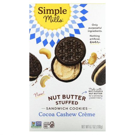 Описание Только содержательные ингредиентыПродукт не содержит никаких искусственных ингредиентовОтсутствие глютена подтверждено сертификатом Gluten FreeСертификат Non-GMO Project Verified Изготовлено из ореховой муки и орехового масла для приятного сладкого угощения Без кукурузыБез камеди Кошерный продукт В качестве подсластителя используется кокосовый сахарFeel what good food can do.®Еда может влиять на ваше самочувствие и помочь вам жить на полную. Компания Simple Mills стремится использовать эту силу. Мы отбираем только простые, содержательные ингредиенты и не используем ничего искусственного. Мы ставим более высокие цели, Вы ожидаете, что еда может быть вкусной и питательной, чтобы вы могли развиваться. -Катлин и команда Simple MillsПочему кешью ?: Мы используем орехи для приготовления печенья и начинки. Кешью содержат полезные жиры, витамины и минералы, включая цинк, магний и витамин B6. КешьюСливочное масло кешью