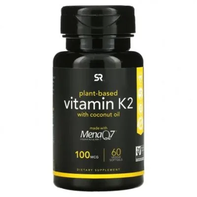 Сведения о добавке Размер порции: 1 мягкая капсула с жидкостью (растительная) Количество порций в упаковке: 60 Состав порции % от суточной нормы Витамин K2 (в форме MK-7 из нута) 100 мкг 125 %** ** Проценты от суточной нормы основаны на рационе в 2000 калорий. Содержит MenaQ7® — витамин K2 в виде MK-7Пищевая добавкаСертификат Non-GMO Project VerifiedСертифицированный веганский продуктНе содержит глютенаИмеет регистрацию текущей надлежащей производственной практики (cGMP)Качество продукта подтверждено в независимой лабораторииСодержит кокосовое маслоВитамин K2 с MenaQ7 от SR® — это форма витамина K2 (MK-7 в виде менахинона-7) премиального качества без ГМО. Витамин K2 от SR® получен из нута путем запатентованного процесса ферментации и соединен с кокосовым маслом первого холодного отжима в сертифицированной веганской капсуле PlantGel™.
