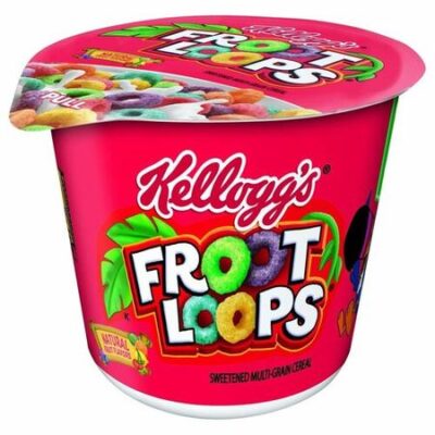Froot Loops в удобной чашке, которую можно взять с собой! Чрезвычайно популярные хлопья для завтрака из США с яркими цветами и восхитительным вкусом! Откройте упаковку, добавьте немного молока и наслаждайтесь!