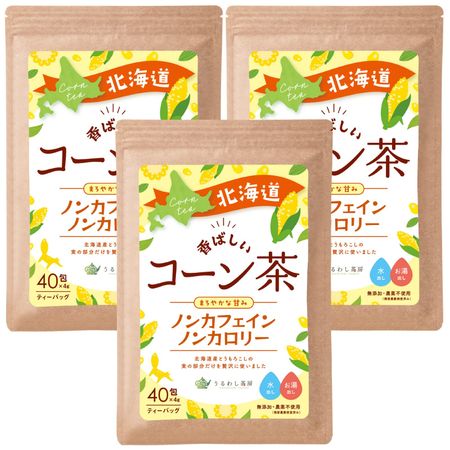 Уруваши Сабо Кукурузный Чай Хоккайдо 40 Чайных Пакетиков x Сделано в Японии из Чая, Ароматный, 100% Кукурузный, Без Кофеина, Без Калорий, Без Пестицидов, 4г, (Пакет 3)