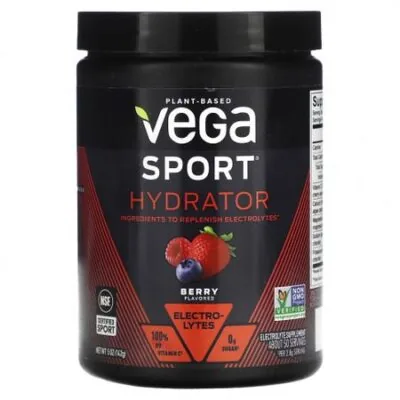 Описание Ингредиенты для восполнения электролитовСертификат NSF Certified SportСертификат Non-GMO Project Verified100% суточной нормы витамина C ‡Электролиты0 г сахара ‡Пищевая добавка с электролитамиОколо 50 порцийИзготовлено из настоящих растительных пищевых ингредиентовВ погоне за личным рекордомСмесь электролитов для занятий спортом5 калорий в 1 порцииВеганский продуктБез глютенаБез искусственных ароматизаторов и подсластителейСертификат B CorporationВо время тренировкиСистема питания Vega Sport®Система питания для продуктивности Vega Sport® подходит для приема перед, во время и после тренировки. Брендан Бразье, Соучредитель Vega, разработчик оригинальных рецептов, бывший профессиональный триатлонист Ironman и автор бестселлеров.«Вега выросла из моей цели: чтобы занятые люди могли без особых сложностей питаться растительной пищей. С 2004 года компания Vega использует натуральные растительные пищевые ингредиенты, чтобы обеспечить рацион, содержащий необходимые питательные вещества».‡ На порцию 2,8 г. Рекомендации по применению Встряхните!Смешайте одну мерную ложку Vega Sport® Hydrator с 2 чашками (16 жидк. Унциями) ледяной воды. Ингредиенты Порошок из кокосовой воды, лимонная кислота, натуральные ароматизаторы, экстракт листьев стевии, порошок из органической свеклы (для цвета). Продукт содержит кокос. Производится на предприятии, где также обрабатываются арахис и молоко., сои, яйца, древесные орехи. Предупреждения Не следует использовать данный продукт, если защитная пленка повреждена. После вскрытия храните с плотно закрытой крышкой в сухом и прохладном месте, защищенном от прямых солнечных лучей. Продукт содержит пакетик диоксида кремния для сохранения свежести. Нельзя употреблять в пищу.Содержимое может дать усадку во время доставки. Пищевая ценностьРазмер порции: 1 мерная ложка (2,8 г)Порций в упаковке: Прибл. 50 Количество в 1 порции% от суточной нормыКалории5 Всего углеводов2 г1%*Всего сахара0 г** Содержит 0 г добавленного сахара