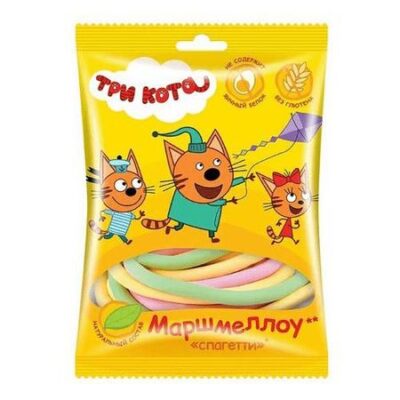 Главная » Продукты,напитки,табак Зефир воздушный Зефирюшка три кота спагетти, 80 г Просмотров 9 Зефирюшка