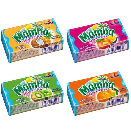 Главная » Продукты,напитки,табак Жевательная конфета Mamba тропикс в ассортименте, 26,5 г Просмотров 2 Mamba