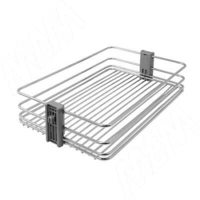 Вид товара: крепления и аксессуары для выдвижных корзин, установка: нижний ярус, цвет товара: хром, количество уровней: 1, выдвижение направляющих: полное/90%